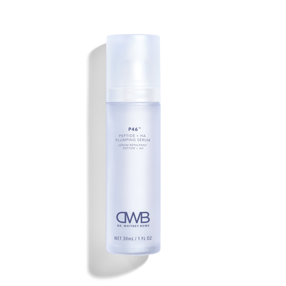 Step 2: Apply 3 to 4 pumps of P46™ Peptide + HA Plumping Serum onto the face, neck, and chest.